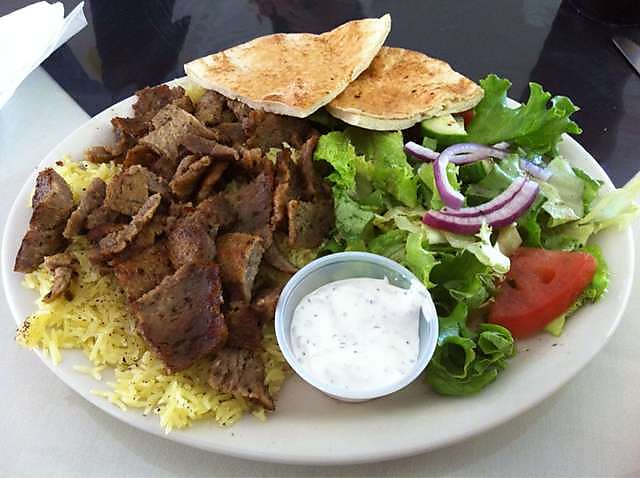 Includes rice, salad, a slice of pita bread &choice of sauce.