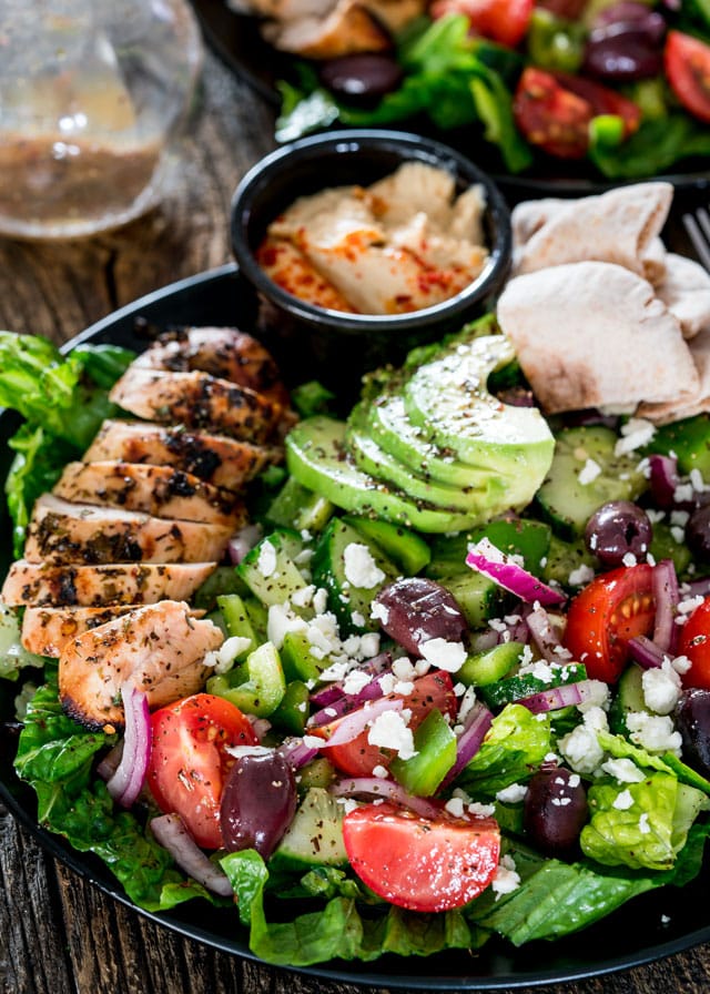 Includes salad, a slice of pita bread & choice of sauce.